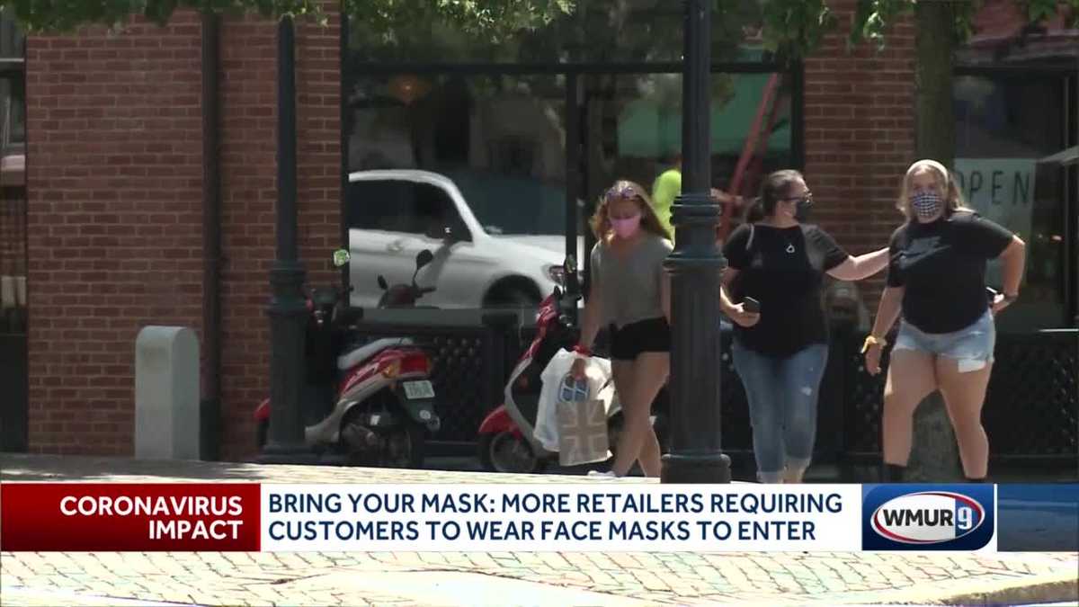 A growing list of major retailers and grocery stores are now requiring customers to wear masks or face coverings while shopping. Download the FREE WMUR appMany of the larger retailers had been deferring to local orders regarding masks for consumers. But as COVID-19 cases have risen in many states in recent weeks, their policies are being changed. Apple, Best Buy, Costco and Starbucks have already been requiring customers at all stores to wear masks. As of Monday, CVS, Kohl’s, Lowe’s, Market Basket, Sam’s Club and Walmart also implement mask mandates.Later in the week, Shaw’s and Home Depot will join those businesses. Aldi and Target plan to make the change next week.Most will enforce policies differently and have exemptions including for young children and those with medical conditions.The New Hampshire Grocer’s Association also told News 9 that they will soon send out a memo to all 800 of their members requesting they too implement a mask requirement.“We’re seeing around the country, where there’s a surge happening again, it’s because they haven’t been wearing the mask,” President of the NH Grocer’s Association John Dumais said. “The important thing to remember is that the mask doesn’t protect you from wearing it. It protects everyone else in front of you.”The changes came less than a week after the National Retail Federation encouraged all retailers to adopt a nationwide customer mask policy. The organization said customers who refuse put employees and other customers at undue risk.The Centers for Disease Control and Prevention has said for months face coverings may slow the spread of COVID-19 and help people who may have the virus and do not know from infecting others.The organization said people should wash their hands before putting one one. Then, ensure it covers your nose and mouth, but fits comfortably and you can breathe easily.Gov. Sununu so far has resisted a statewide mask mandate for people in public. He has strongly encouraged people to wear them.